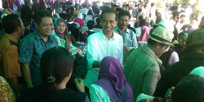 Kedatangan Gubernur yang terkenal dengan aksi blusukan ini awalnya tidak diketahui warga. Namun, setelah panitia memanggil Jokowi untuk naik ke atas panggung dan membuka acara nikah massal, ratusan warga yang hadir langsung heboh.